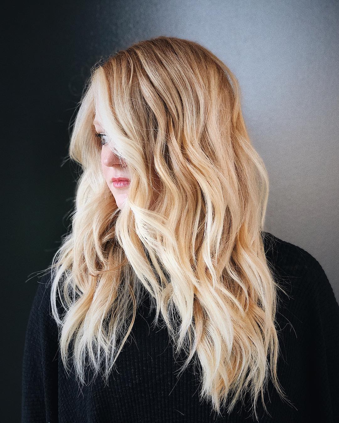 Cette proposition est basée sur l’utilisation d’une transition d’une nuance de cheveux foncée à blonde, dans laquelle vous pouvez utiliser non seulement des couleurs proches de la nature, mais aussi, par exemple, du platine ou du rose vif, qui ont l’air un peu inhabituels, mais très Impressionant. Souvent, ce style de peinture est également appelé peinture 3D, ce qui est absolument justifié. Bronding est particulièrement beau sur les cheveux blonds.