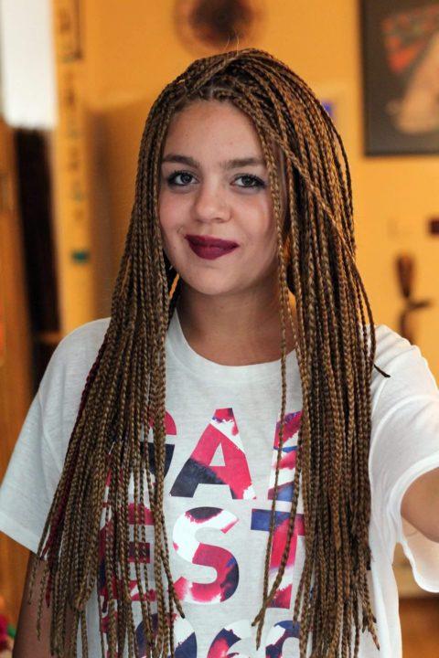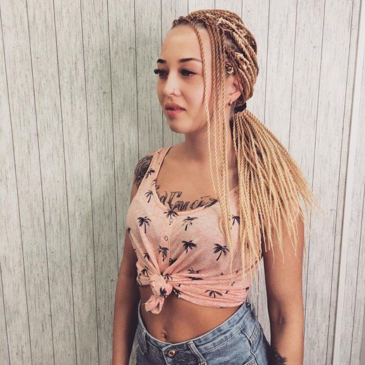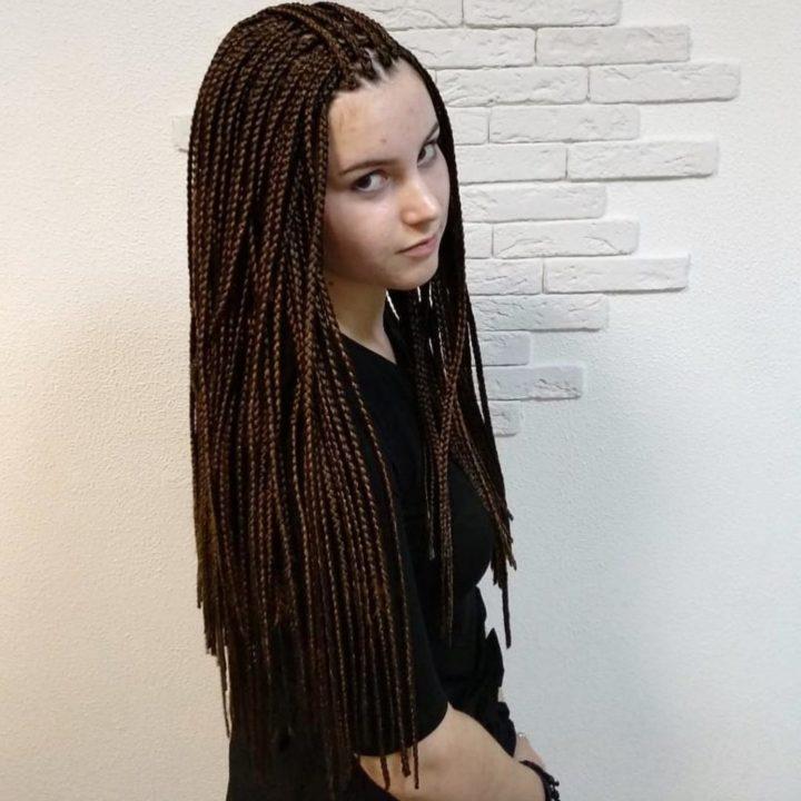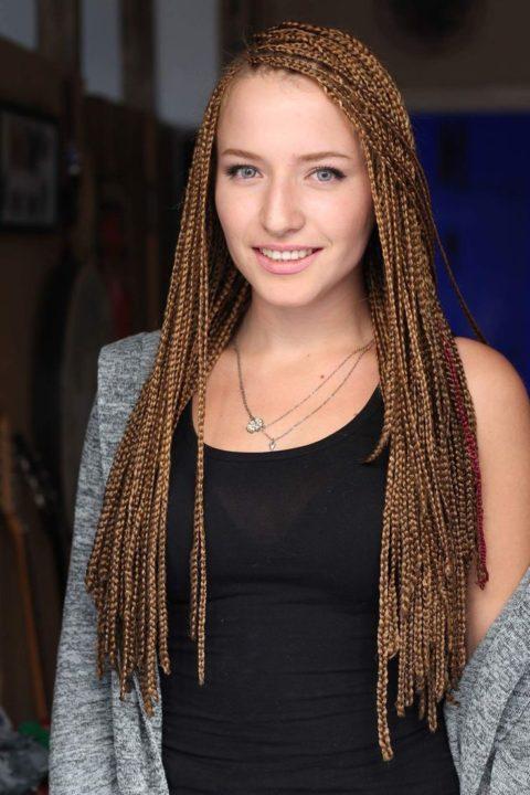 Nous voyons souvent des tresses zizi sombres dans les magazines sur des filles à la peau foncée et cela a l’air parfait. Mais si vous avez la peau claire, ce n’est pas une raison pour refuser un tel tissage.