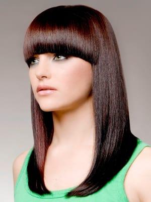 C’est un bang polyvalent qui peut être combiné avec presque tous les types de visage, cela dépend du type de cheveux. Il ne convient pas aux boucles et aux cheveux bouclés. Semble magnifique sur les cheveux raides et les longues coupes de cheveux. Un carré classique est considéré comme une option idéale avec une frange droite.