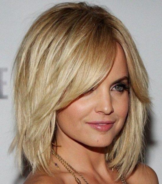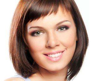 - Un visage rond aidera à rendre la frange allongée, biseautée en diagonale, sa longueur peut être différente, à la fois aux sourcils et aux pommettes ou au menton.