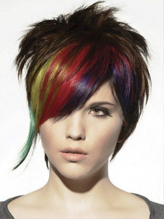 Déchiré, asymétrique, ultra-court, avec des boucles aux couleurs vives, une frange d’une longueur particulière, rendent la coiffure créative. Une image aux notes audacieuses et audacieuses, adaptée aux créatifs qui n’aiment pas la monotonie.
