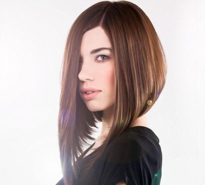 La coiffure d’un carré avec un allongement est spectaculaire, c’est à ce moment que les boucles latérales atteignent le menton, ou même plus bas, et que la partie arrière est très courte, parfois rasée.
