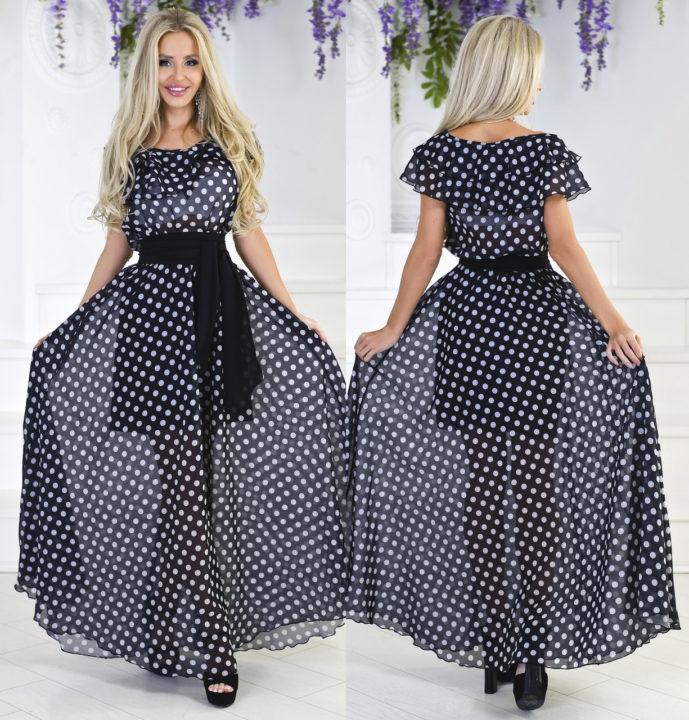 Un imprimé à pois décontracté dans n’importe quel design conviendra au visage d’une jeune fille et d’une femme plus âgée. Après tout, ce sont les pois qui sont considérés comme une impression universelle sans restriction d’âge ou de statut.
