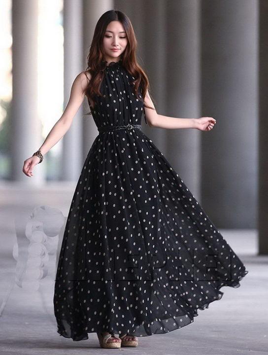 Des robes longues avec une jupe fluide et aérée et un haut ajusté sont la clé d’un look réussi. Ces robes sont idéales à la fois pour une silhouette élancée et pour les filles pleines, où une jupe peut cacher un problème au ventre et aux jambes.